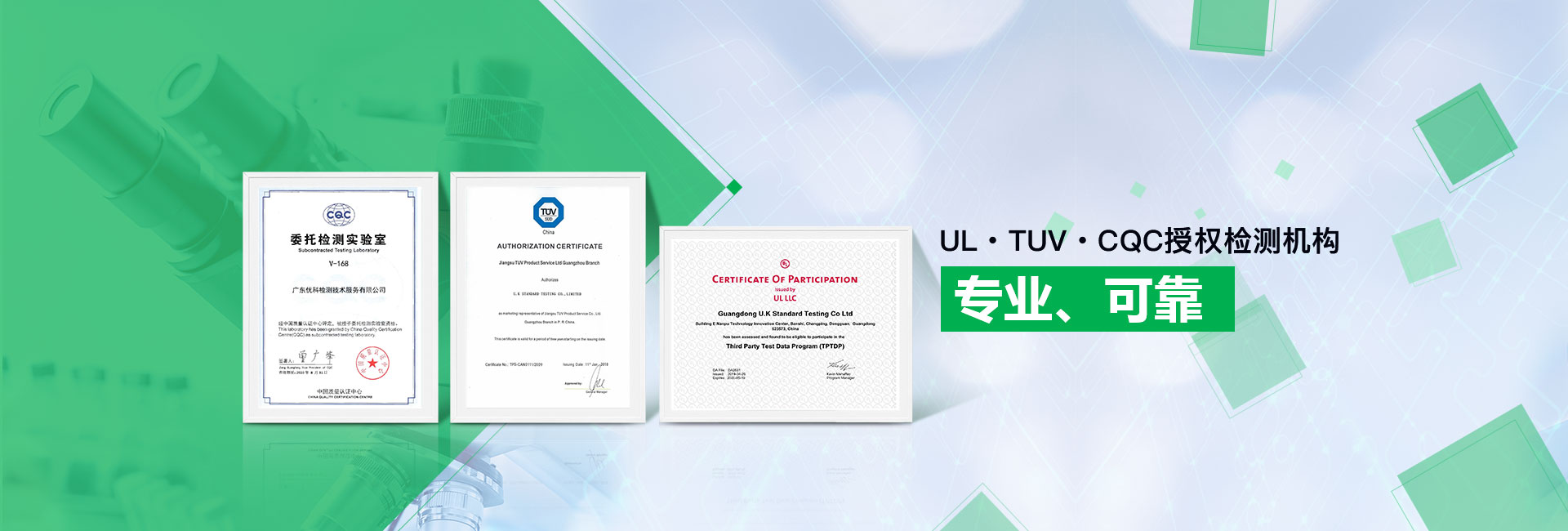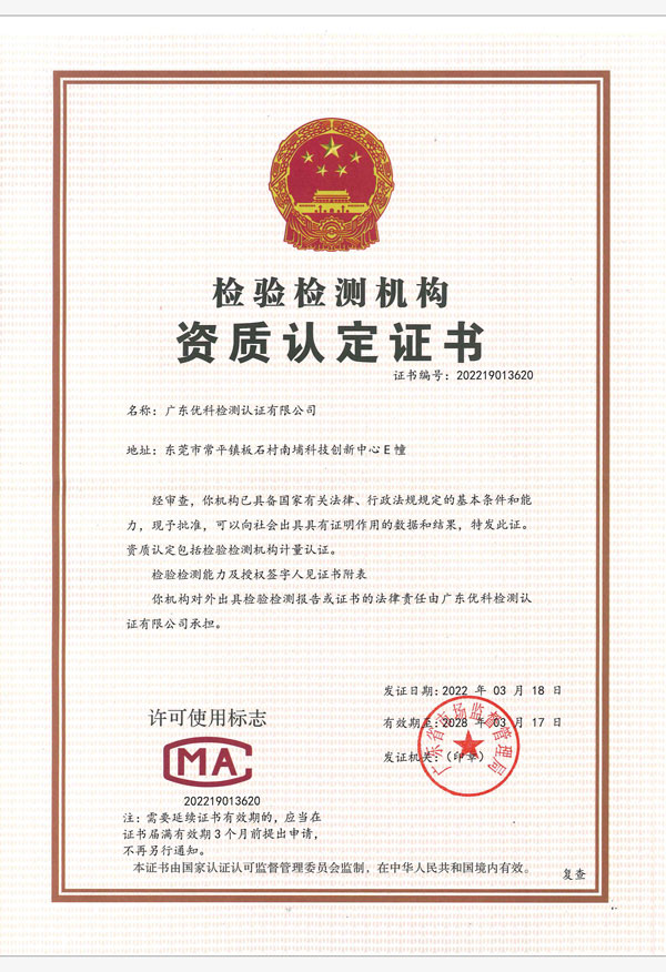廣東優(yōu)科檢測(cè)認(rèn)證有限公司(簡(jiǎn)稱:UKK)成?于2007年,是國(guó)內(nèi)專業(yè)的汽車整車及零部件、電子元器件第三方檢測(cè)實(shí)驗(yàn)室,國(guó)家級(jí)中小企業(yè)公共(技術(shù))服務(wù)示范平臺(tái),獲得了國(guó)家?新技術(shù)企業(yè)、廣東省專精特新中小企業(yè)、市級(jí)工程技術(shù)研發(fā)中心等榮譽(yù)稱號(hào)。 More